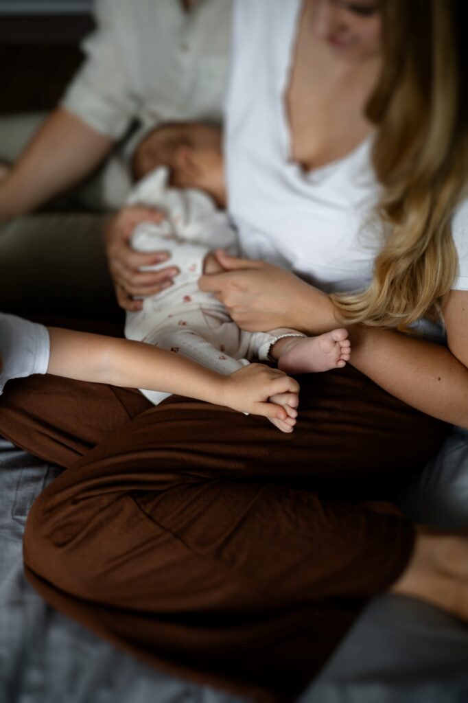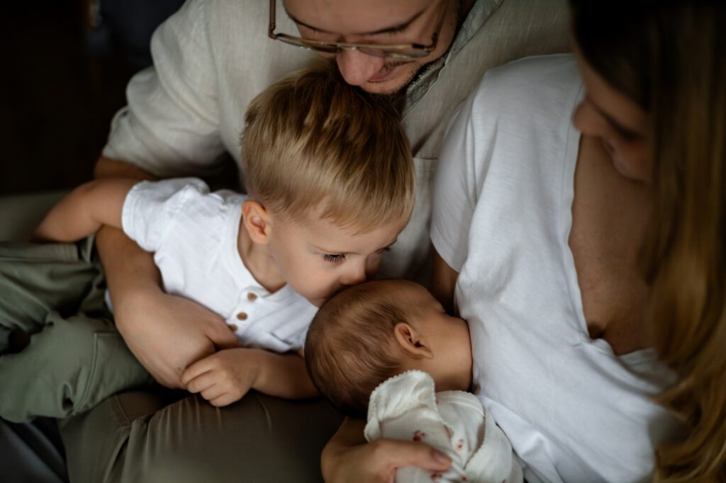 Podczas takiej sesji nie próbujemy niczego przyspieszać ani kontrolować. Nie ma potrzeby, by dzieci „ładnie pozowały” czy reagowały na polecenia. One najlepiej czują się wtedy, gdy mogą być sobą. Gdy mogą przeżywać swoje małe emocje – ciekawość, potrzebę bliskości, a czasem zwykłe zmęczenie. Dla starszego rodzeństwa to bardzo ważne: dostać przestrzeń na swoje uczucia i uwagę, nie być tylko tłem dla nowego członka rodziny.